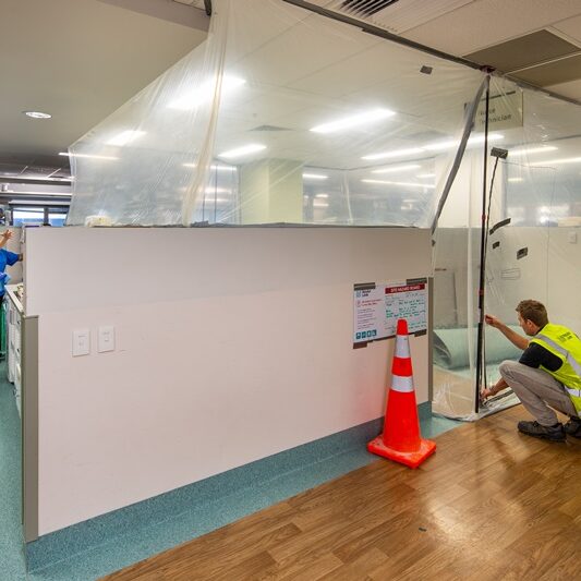 The project was staged to allow it to take place without undue disruption to the busy ICU, with enabling works including building new sleeping quarters for the RMOs, stage two involving demolishing the old RMO sleeping quarters to make space for a new administration area, and the third and final stage involving demolishing the old administration area and creating six new beds and a new nurses’ station.