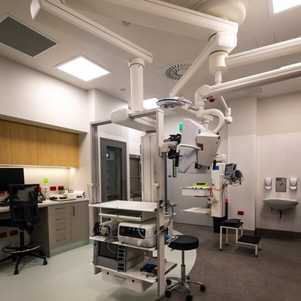 The new Endoscopy Auckland facility in Newmarket’s healthcare precinct comprises a basement level with plant rooms and car parking, a ground floor featuring a main reception area, 16 patient recovery rooms, four operating theatres, and staff amenities on the first floor including bathrooms, offices and sterilization rooms.