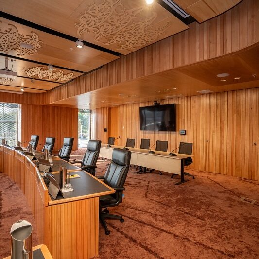 Ashburton’s new library and civic centre, Te Whare Whakatere, includes a library, customer services counters, meeting rooms and events spaces, public and staff amenities, a café, a recording studio and learning lab, executive suites, Council chambers and staff workspaces, plus an IL4 Emergency Operations Centre.