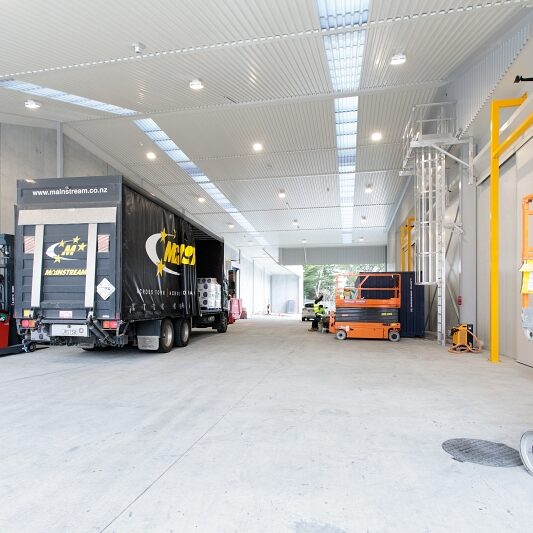 We laid 3,500m2 of concrete pavement to form driveways, truck turning areas and loading docks, all built to cope with the many large vehicle movements through the facility. The insulated floor slabs use Denka concrete additive, eliminating the need for control joints and saw cutting. This minimises ongoing maintenance and reduces wear on forklift tyres.