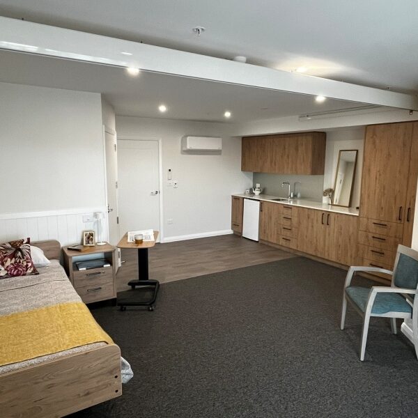 We installed new structural framing to reconfigure 17 existing units into 15 modern care apartments with overhead patient hoists, along with communal lounge and dining spaces, staff facilities, toilets and bathrooms, sluice and sterilisation rooms, and fire cells to meet current compliance requirements.