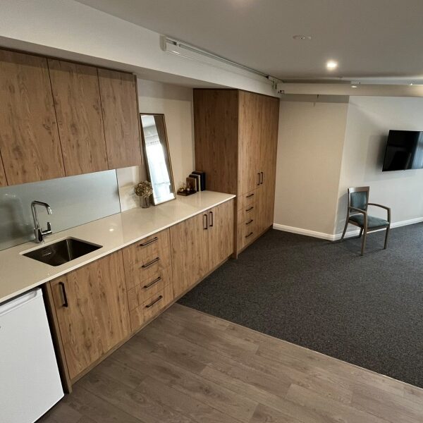 The refurbishment included new wall and ceiling linings throughout, double‑glazed aluminium joinery, kitchens, bathrooms and floor coverings. We also completed a comprehensive upgrade of building services, including HVAC, electrical, hydraulic, fire suppression and nurse call systems.