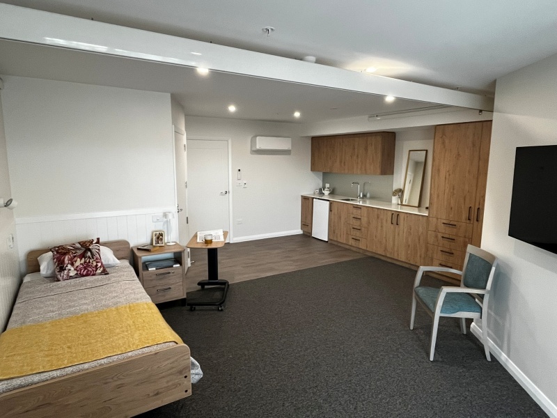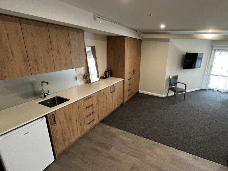 We installed new structural framing to reconfigure 17 existing units into 15 modern care apartments with overhead patient hoists, along with communal lounge and dining spaces, staff facilities, toilets and bathrooms, sluice and sterilisation rooms, and fire cells to meet current compliance requirements.