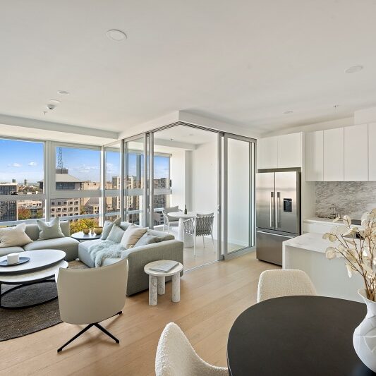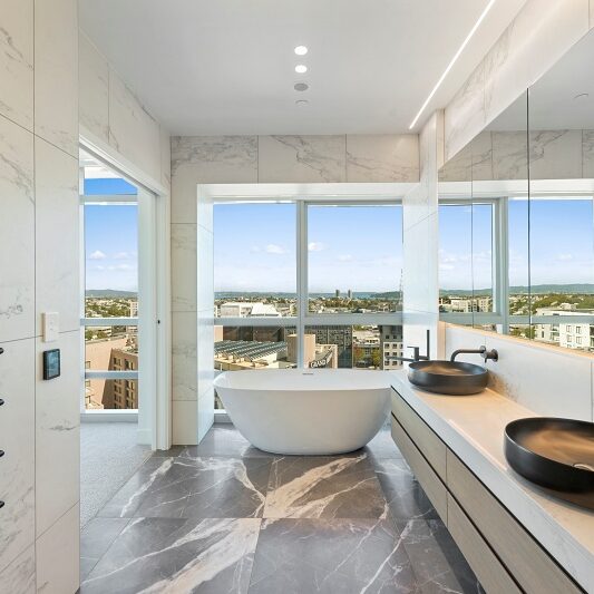 With the new floors and façade in place and the heritage components reinstated, we started a top-quality fitout of the 114 apartments, including a stunning penthouse apartment spanning the entire top floor. The building also features a pool, gym and movie theatre.