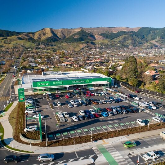 Countdown Richmond is a 3,450 square metre supermarket and 550 square metres speciality retail development on the outskirts of Nelson. The flagship Countdown is the first 5 Green Star Design and As-Built supermarket to open in New Zealand and incorporates many sustainability features, including EV charging points, solar panels, digital shelf labels, above code insulation, low energy lighting and energy-efficient services.
