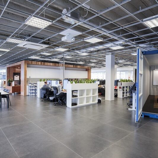 As well as the board room, the project includes a new kitchen, WCs, exhibition space, and a meeting room built into a shipping container. We incorporated multiple products in the meticulously detailed fitout, including Autex wall panelling and acoustic ceiling baffles and USG suspended ceiling grid. The ceiling was partially tiled due to the client’s preference for a gritty, semi-industrial feel.