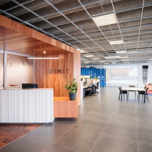 Dalman Architects appointed our Canterbury Interiors team to complete the fitout of their new 750m² flagship office, situated on a prominent site on the corner of Colombo and Peterborough Streets in central Christchurch.