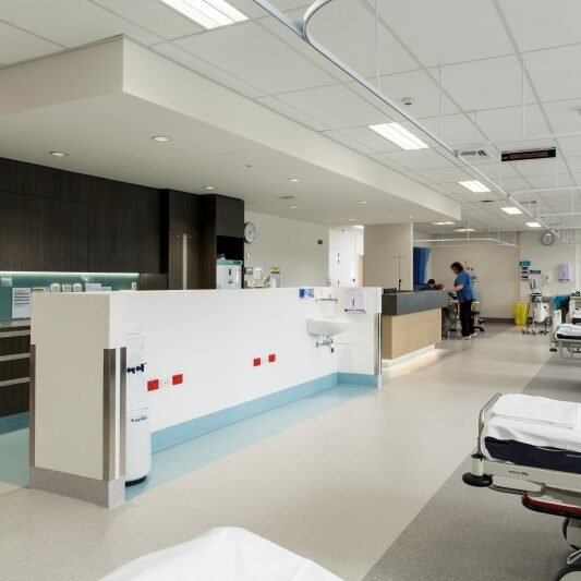 Services coordination in the aging building was a key challenge throughout the project, especially connecting new services into the existing plant. There wasn’t enough space in the ceiling to complete the work as-designed and we also found asbestos, so our team worked closely with the consultants to make it work. Additional requirements to re-route services temporarily between the ICU and HDU stages also required significant input from our services team and the mechanical contractor, all of whom rose to the challenge admirably.
