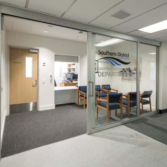 This project to replace cramped, outdated facilities at Dunedin Hospital started with the construction of a new gastroenterology department on level 8. The facility includes reception and administration areas, two endoscopy suites with x-ray protection capabilities, a nursing base, 10-bed recovery area, utilities and office spaces.
