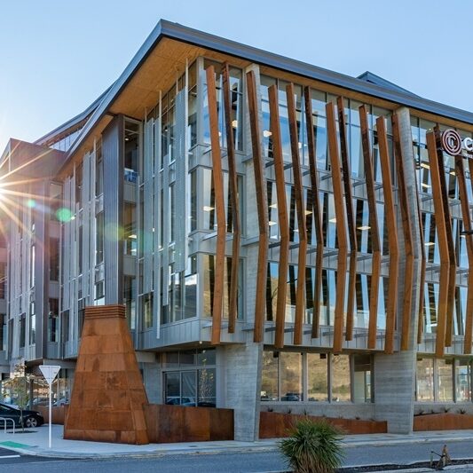 Craigs Investment Partners House, known as Five Mile Building 8 throughout construction, is the third stage of the Five Mile Centre in Frankton. It has 16 separate tenancies over five floors, with just under 6,000m² in floor area. The ground floor is retail/hospitality (including a Joe’s Garage that we fitted out in a separate project), and the top four floors are offices, including Naylor Love’s Queenstown office.