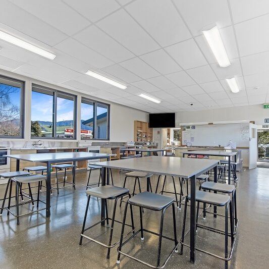 Central to the project were two impressive new blocks, each spanning 750sqm. One houses nine learning spaces, while the other features a whare wānganga, library, whare kai and administration unit. These functional spaces embrace an in-depth cultural narrative, showcasing kōwhaiwhai patterns by well-known local artist Robin Slow on fascia boards, steelwork, glass, joinery and LVL beams. The intricate artwork details the history of Golden Bay/Mohua and the school, crafted to the highest standards of quality by our dedicated team.