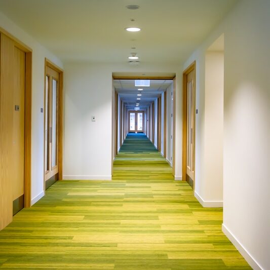 In total there are 324 single rooms, 90 shared bathrooms, 11 accessible ensuite bathrooms, 11 common rooms with kitchens, 16 study lounges, a games room, music room, communal laundry, multi-function space, commercial kitchen and a dining room with a vaulted timber ceiling over 9,000m². There is also a reception foyer with a mail room, four meeting rooms, four storage rooms, plus there’s a communal bike storage building and basketball/tennis court outside. The high-spec finishes are bright and durable, creating a great environment for the students to live and learn in.