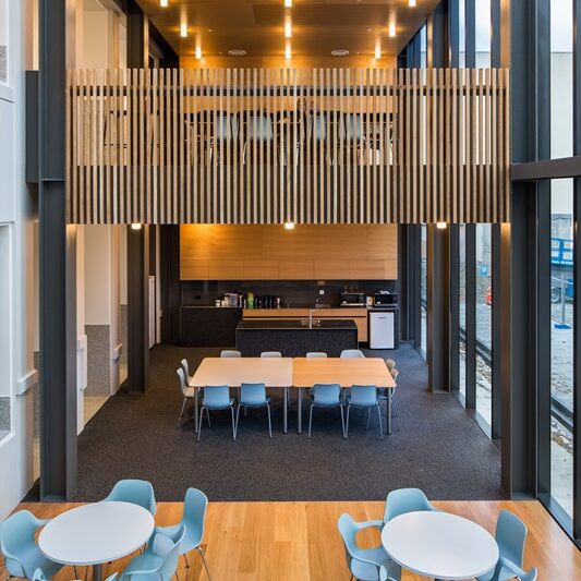 Hutt City Council’s administration building in Laings Road has been transformed by our Wellington team, with the earthquake-prone building re-piled and strengthened to meet current building codes and a complete revamp of the interior.