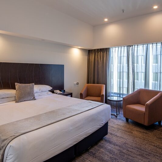 We completed a comprehensive renovation and refurbishment of all 200 rooms in the City Wing at the James Cook Hotel, including new bathrooms, floor coverings, furniture and paint. We staged the work to minimise disruption to the hotel staff and guests, working on 3-4 floors at a time. We also redecorated the restaurant, upgraded the staff changing room, replaced the staircase façade and built a new conference space with state-of-the-art lighting and operable walls.