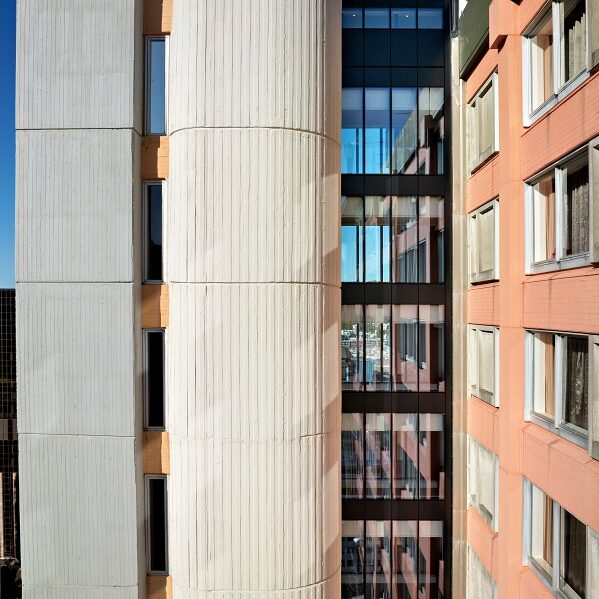 Additional works included a major master switchboard replacement and a new curtain wall system on the link bridge spanning 10 floors of the building connecting the lift tower to the City Wing. We also upgraded the roof-plant area, re-laid the roof membrane and re-clad the roof penthouse apartments.