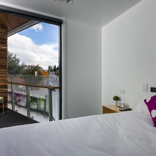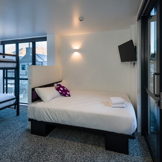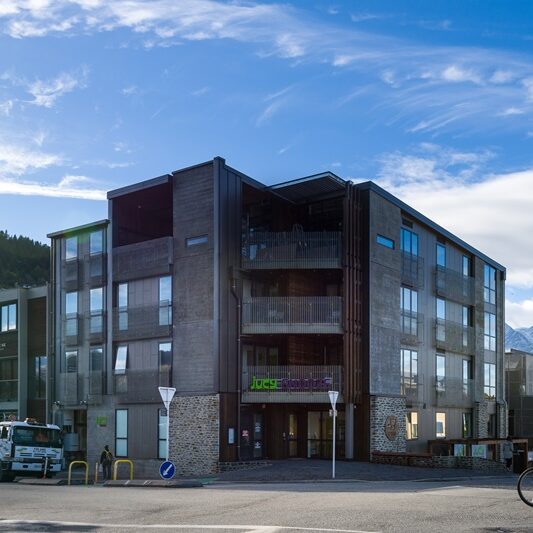 The five-storey Jucy Snooze Queenstown is a perfect example of space saving design, packing 39 ensuite double rooms, dorm rooms with 196 sleeping pods, communal kitchens and bathrooms, a reception area and a roof-top bar and café into a 1,775m² building. Our team contributed buildability advice in design/methodology meetings before work started on site, then worked within tight tolerances to ensure that everything was millimetre-perfect.