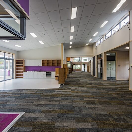 The building features three different wall claddings and a raked suspended ceiling, plus expansive glazing providing both great views over the suburb and natural lighting. CO2 meters alert the staff when to open the high-level windows. This stage, known as the Kaukau block, was completed in plenty of time for the school’s 125th anniversary celebrations over Labour Weekend in 2018.
