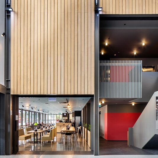 The rejuvenated Town Hall links to the Events Centre via a spacious new atrium, and is adjacent to the administration building that we re-built in an earlier project. There are also a range of meeting rooms and smaller function spaces, a large commercial kitchen and an onsite café in the complex, which contributes to an emerging dining and entertainment hub in the Lower Hutt Civic Precinct.