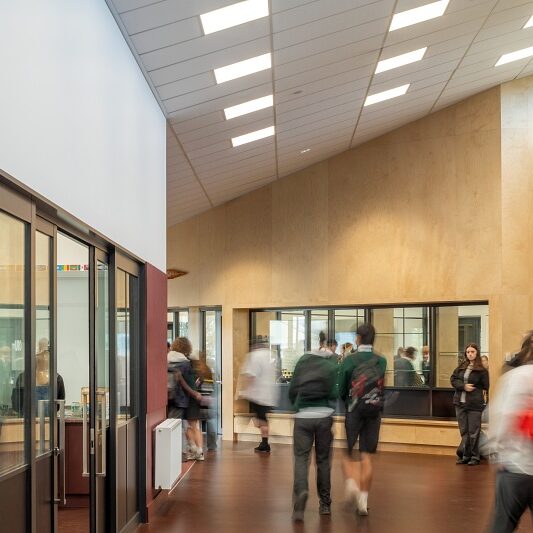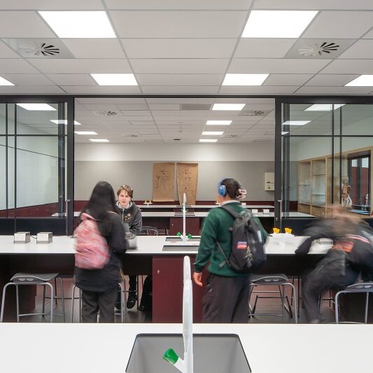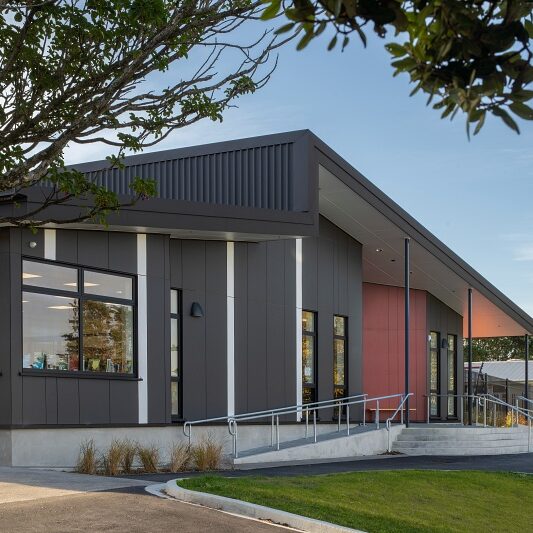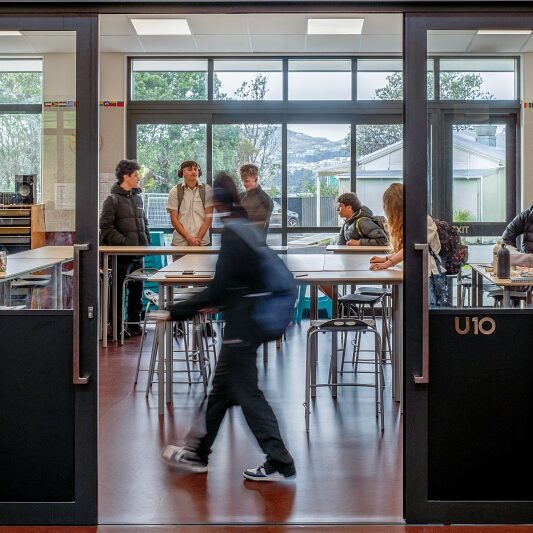 With the old blocks safely cleared away, we returned a few months later to build a new single-storey block with 14 specialist technology and science teaching spaces (Te Urukahika) and a special needs wing (Te Whare Ako). The building has a ring beam and pad foundation with a rib-raft heated slab, a structural steel frame and a prefabricated warm wall and warm roof envelope.
