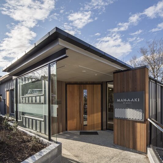 Manaaki by Mercy is a 754m² purpose-built hospital day stay facility incorporating two operating theatres/procedure rooms, associated recovery and auxiliary areas over two stories, along with a chemotherapy suite.