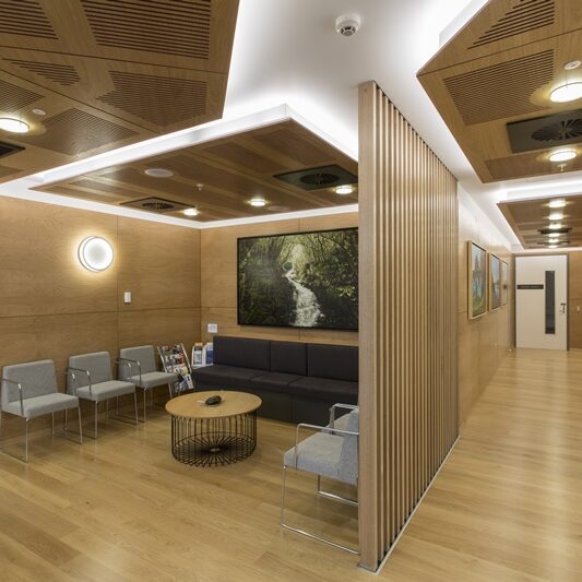 Despite being an effective, efficient, IL4 level fully self-contained hospital building, the high-quality internal finishes crafted by our skilled carpenters ensures that the clinic is warm and welcoming for patients.