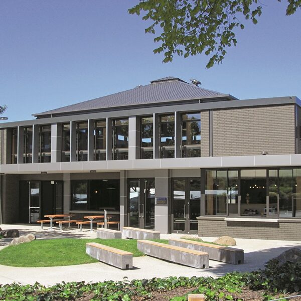 The building’s footprint remained essentially the same, but the interiors were gutted and reconfigured. The ground floor now has a café and fireside sitting area facing the Botanic Gardens, while upstairs there is a large open-plan study area and a series of smaller interconnected group learning spaces. High quality finishes included American white oak panelling.