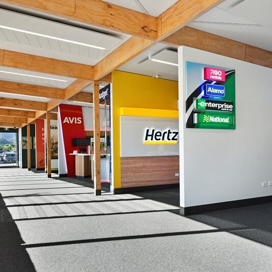 Our latest project at Nelson Airport was a new rental car hub, replacing a series of portacabins with a purpose-built, 260 square metre facility for the airport’s rental car tenants’ front-of-house functions.