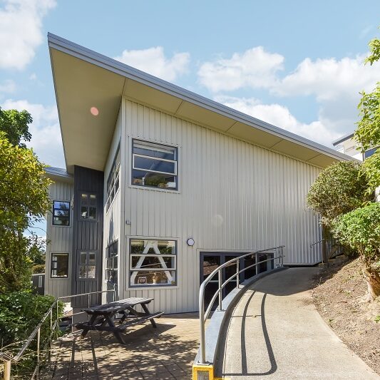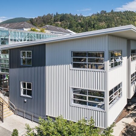 The maths block at Nelson College for Girls is a two-storey, eight classroom building that connects to the several other classroom blocks via a glass atrium. We refurbished the block in an 11-month project, replacing the roof and cladding, completing seismic strengthening, updating the fire alarms, lighting and passive fire features, and installing accessibility upgrades including a new lift in the atrium.