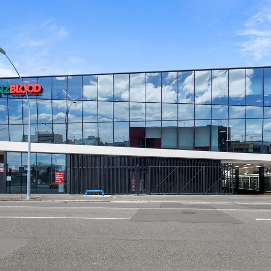 We built a new three-storey building in the Hamilton CBD, with a basement car park, a state-of-the-art donor centre, offices, meeting rooms, a staff room and logistics facilities for the New Zealand Blood Service. The building features a striking three-dimensional curtain wall façade and a sloped entrance canopy.