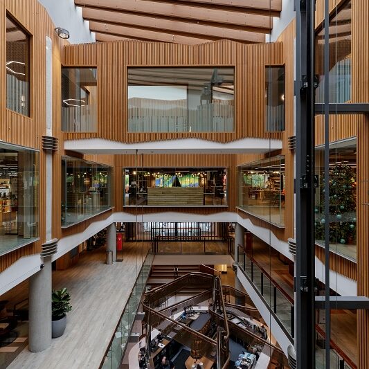 With the structural works complete, we re-built the centre in a new open plan configuration, with storage and parking in the lower basement, a food court on the lower ground level, two levels of retail, and offices on the top floor.