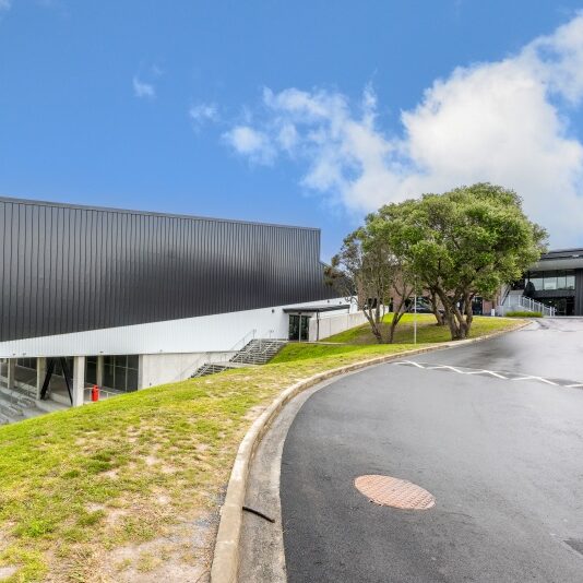 We started with the demolition of an existing gymnasium and library and the construction of a new gym on a challenging hillside site. The gym is a hybrid of insitu and precast concrete and steel frame, with a Rooflogic warm roof, aluminium joinery, and Rodeca translucent polycarbonate cladding. The 3,185m2 building includes a main sports floor with retractable bleachers, a weights room, changing rooms and teaching spaces across two floors.