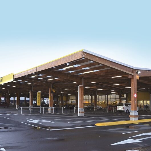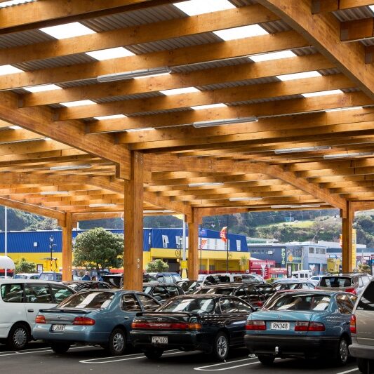 The canopy was commissioned by the store owner to ensure that his customers have a dry shopping experience. Works included a 3,520m2 glue laminated timber canopy structure and associated carpark works. The building is located above one of the major fault lines in Wellington, so the design had to allow for major seismic movement. This structure was tested when we experienced a 6.5 magnitude quake during construction. Footage from the carpark cameras showed cars in the carpark rocking back and forth with the canopy structure barely moving.