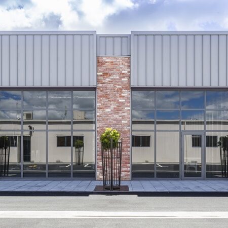 The attractive single-storey steel portal and tilt panel structure features a mixture of Espan metal cladding and red brick columns. The reclaimed red bricks were sourced from earthquake demolitions in Christchurch and St Mary’s Church in Hamilton. There are large areas of seismic joinery.