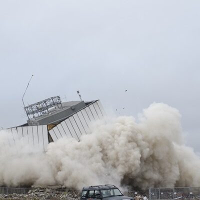 After several months of meticulous investigations and an interior strip-out, 60kg of explosives were used to completely collapse the building in 6 seconds, to the delight of several hundred onlookers. After over a year of painstaking demolitions, it was widely viewed as a huge step forward for Canterbury’s earthquake recovery.