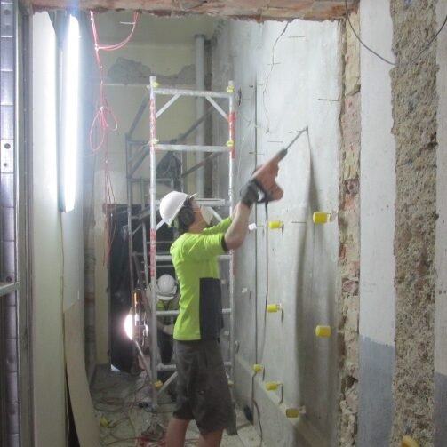 An important component of the seismic strengthening works involved 200mm thick shotcrete sprayed onto brick walls throughout the entire brewery while it was still operational. The shotcreting standard had to be high enough for a food processing area.