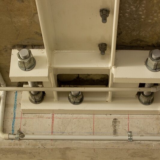 - Bolting steel bracing under the ceiling, walls and beams and packing them with grout