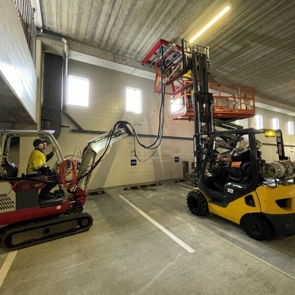 The car park stayed open throughout the 13-month project. We carefully managed our work areas, cordoning them off from the public with road cones and clear signage. We also used noise blankets and dustless drill bits plus extraction to minimise disruption.