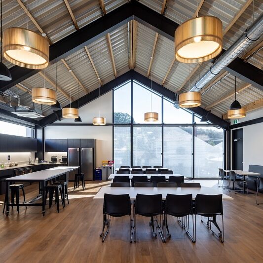We uncovered the foundations of a school built in the 1860’s on as we started on the extensive excavation of the sloping site, with the building sitting on ground beams and topped with a concrete slab. We formed the two-storey structure with steel portal frames and LVL roof purlins, topped with a warm roof. We chose an innovative rib-and-infill system for the floor between the two levels, with timber infills installed over concrete ribs and reinforced with prefabricated reo panels before being filled with concrete. This proved to be both efficient and safe, reducing the need for work at height.