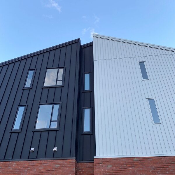 The ground floor comprises of seven live-work units with a one-bedroom apartment and an area suitable for a small business. The storeys above consist of one- and two-bedroom apartments, all with private balconies. Brick cladding on the ground floor walls blends into the overall landscape, which features extensive native planting, timber screening and car parking. Levels 1 and 2 have an attractive blend of Nu-Wall and Heritage Tray cladding.