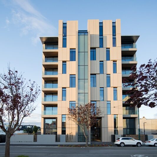 The Paragon Apartments on Armagh Street is Christchurch’s first base-isolated apartment development and sets a new standard in seismic resilience and low damage design. The nine-storey, 14-unit complex features double-level gallery and penthouse apartments.