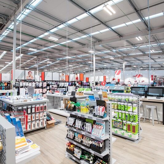 Replacing the original 2,000m2 store, the new building was constructed with precast panels on a portal frame, built in sections on the pad and craned into place. The post tension slab was poured in two sections, taking 22 hours of continuous pour, 10 days apart. A Kingspan roof was manufactured offshore to meet a tight programme, designed to maximise natural light and reduce power usage by 30%.