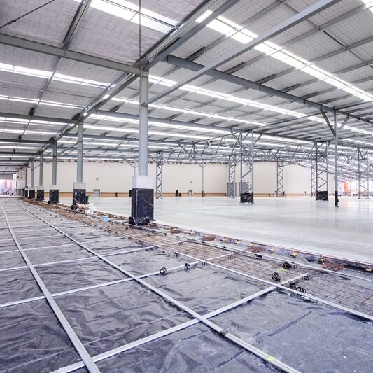 The quality and finish of the pre-stressed slab is the heart of the project. Attention to detail and strict protocols were followed to provide a crack-free 50,000m² of total covered area.