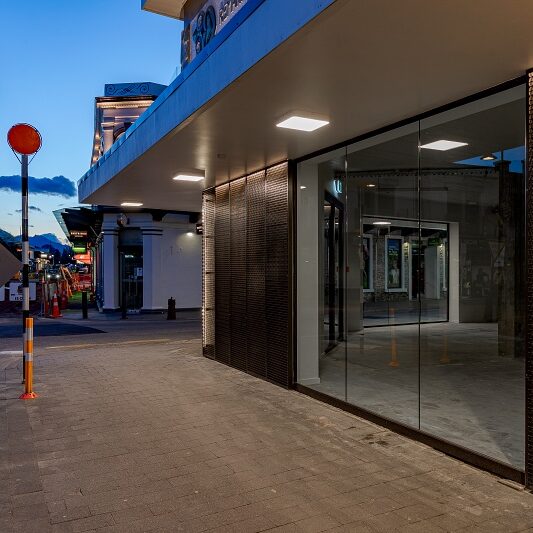 The new shopfront works involved large display windows, doors, and LED back-lit mesh rainscreen cladding, which improved the building’s street appeal.