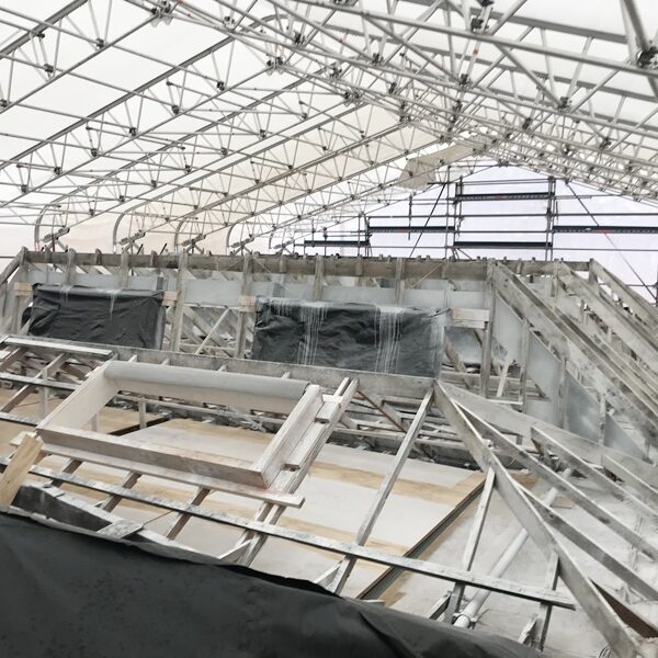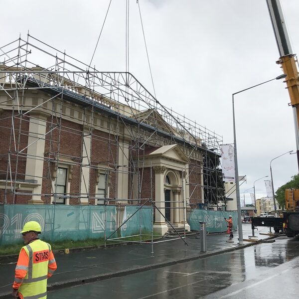 Over 80 years later, we returned to replace the older parts of the roof and re-fall the membrane gutters, protecting the museum with a series of massive tents supported by an intricate web of scaffolding as we worked stage-by stage. Unfortunately we discovered asbestos slates in the roof cavity and the scope changed to removing the roof right back to the original rafters, completing a full environmental clean and installing a new roofing system of ply, membrane guttering and Colorsteel. We also installed powder-coated Moddex handrail system to ensure that future maintenance could be completed safely.