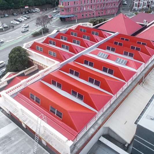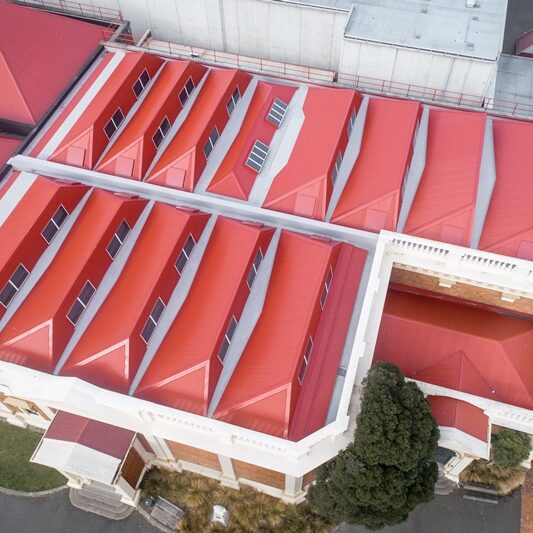 While largely hidden from the ground, the 2,000m² of brand new, bright red roof is entirely in keeping with the heritage building and is quite a landmark from above!