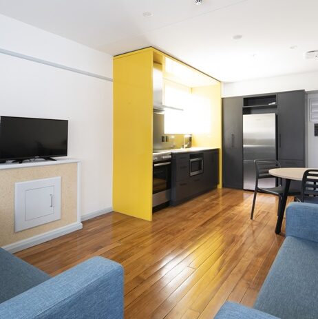 1940’s era state housing re-purposed as bright, modern student accommodation.