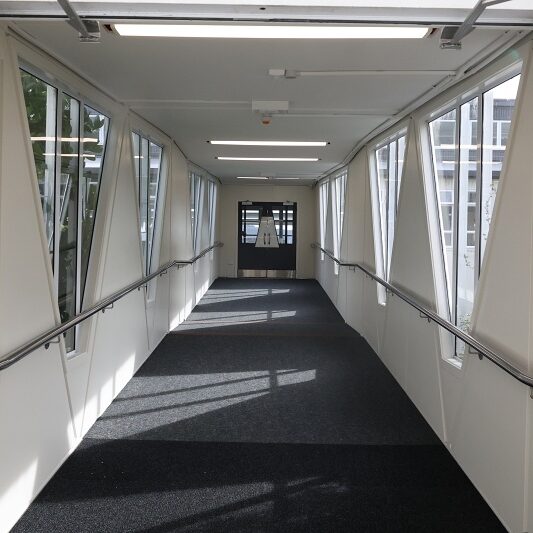 Accessing the top level of the three-storey block to install the Nu-Wall aluminium cladding presented a logistical challenge; it is not connected to the lower floors and could only be accessed either through the school or via a steep hill behind the building. Our team came up with a clever solution, integrating a construction hoist into the methodology to ensure that materials could be handled safely and efficiently.