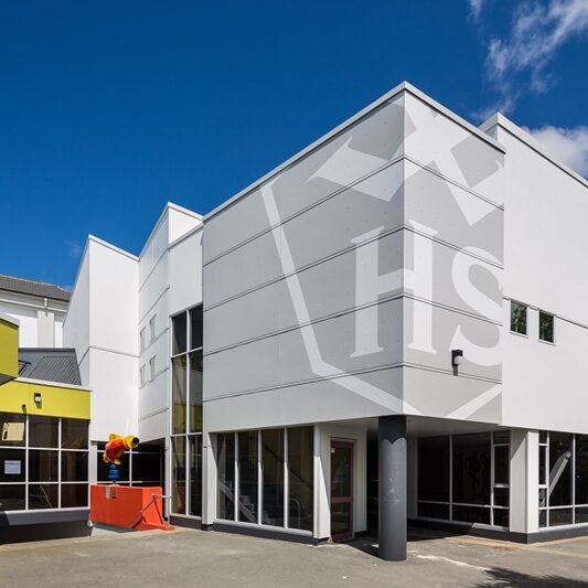Our weathertightness remediation project at Wellington High School included the replacement of the library, foyer, hall and music block building envelopes and the construction of two classrooms in the gym.