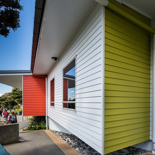 We replaced a substantial amount of timber replacement and completed structural upgrades to the timber-framed buildings, re-cladding the buildings in weatherboard and Sto plaster over a James Hardie cavity system. We replaced the existing Colorsteel roofs and installed Sarnafil waterproofing systems on low-pitched membrane roofs.