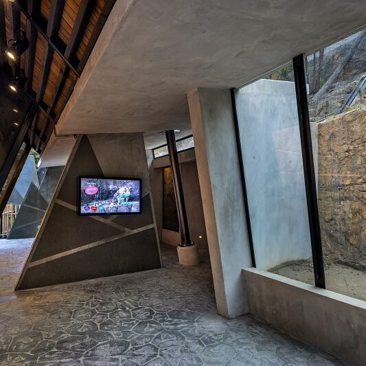 Sustainability was an important consideration for the client, with only sustainably sourced FSC timber used on the project. We recycled materials where possible, using concrete from the old sun bear exhibit on the site to fill the moat and repurposing large branches from other parts of the zoo for the cats to climb on.